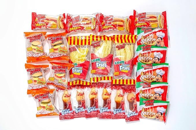 Ingredienser: Glukossirap, Socker, Vatten, Gelatin (från nöt), Äppeljuice (3%) (från koncentrat), Fuktighetsbevarande medel: Sorbitolsirap, Surhetsreglerande medel: Citronsyra, Mjölksyra; Hydrolyserat ärtprotein, aromämnen, Ytbehandlingsmedel: Bivax och Karnaubavax; Antioxidationsmedel: Askorbinsyra, Koncentrat från (morot, svarta vinbär), svart morotsextrakt, Färgämnen: E120, E141(ii), E150c, E160a(i), E160c, E160e