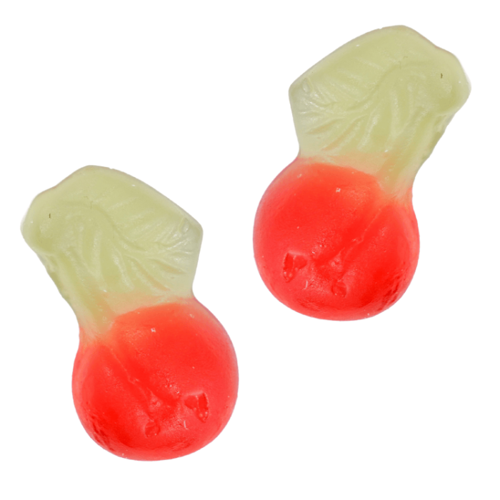 Ingredienser: Sötningsmedel (maltitolsirap), gelatin, vatten, surhetsreglerande medel (citronsyra), aromer, färg (E120, E141, E161b), ytbehandlingsmedel (karnaubavax, vegetabilisk olja - kokos & raps). Innehåller Sötningsmedel. överdriven konsumtion kan ha laxerande verkan.
